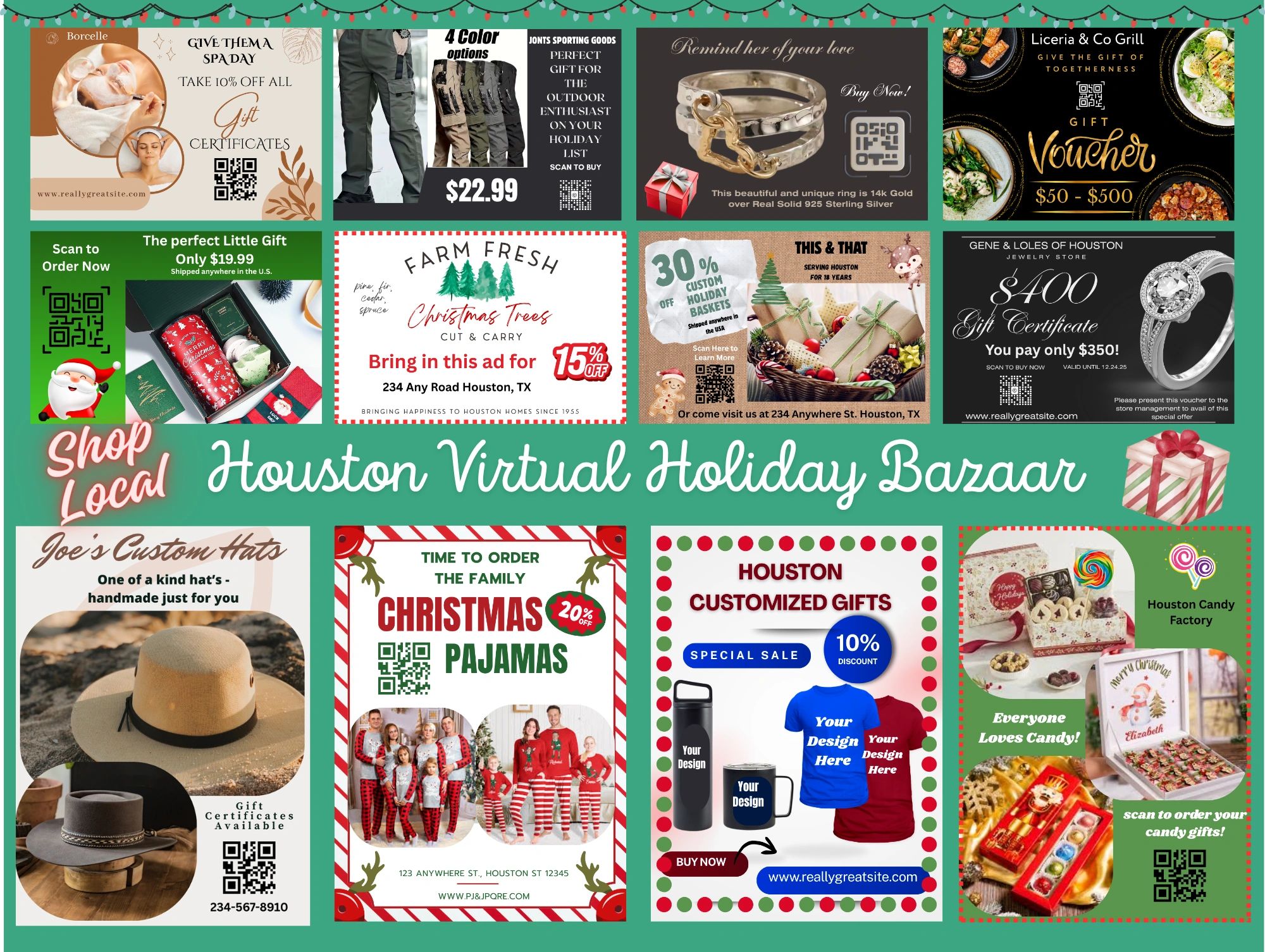 Reach of thousands of shoppers this holiday season with our huge 9x12 full‑color Virtual Holiday Bazaar postcard. Designed to showcase Houston’s best products, services, and gift ideas.